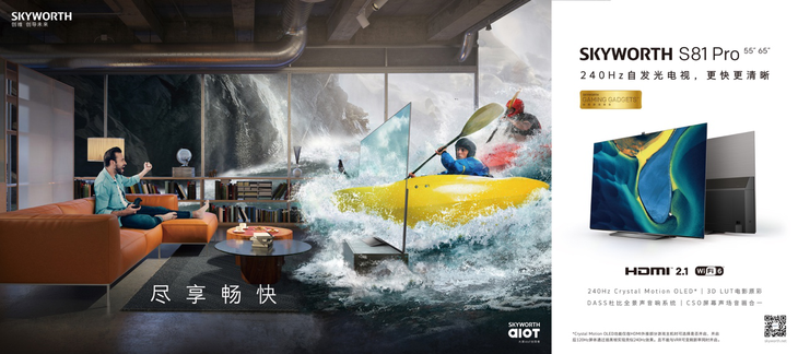 作为创维电视首台“SKYWORTH GAMING GADGETS创维游戏装备”,S81 Pro通过全程支持VRR可变刷新率,使玩家得以彻底告别游戏画面的卡顿与撕裂。通过全程支持4K 120Hz游戏,配合240Hz CMO功能及OLED天然快响应、HDMI2.1自动低延迟模式的加持,让游戏体验更畅快,几乎感觉不到延迟。与多方协议的互联,则让S81 Pro能够实现全场景手机投屏游戏,随时大屏游戏。在观影方面,S81 Pro搭载的4K AI画质引擎具有120FPS MEMC(较低帧率提升至120FPS)、超级清晰度(即SR,较低分辨率提升至更接近4K)、酷睿炫彩(即ACM,色彩更精细)、AIPQ功能。同时,S81 Pro支持3D LUT电影原彩功能,能以全立体色彩空间的控制方式影响色彩、饱和度、亮度等,配合20点白平衡调校,实现△E 0.98惊人色准值,使影视画面色彩得到充分解析与还原,发挥出全新LGD V20 4K 120Hz OLED自发光屏的全部实力。同时,S81 Pro也是创维首款OLED 模组自制(OBM)的CSO机型,通过屏幕本身的震动进行声音传播,使画面和声音的出处完全相同,进而实现音画合一,使之真正成为一台畅快的“观影神器”。
