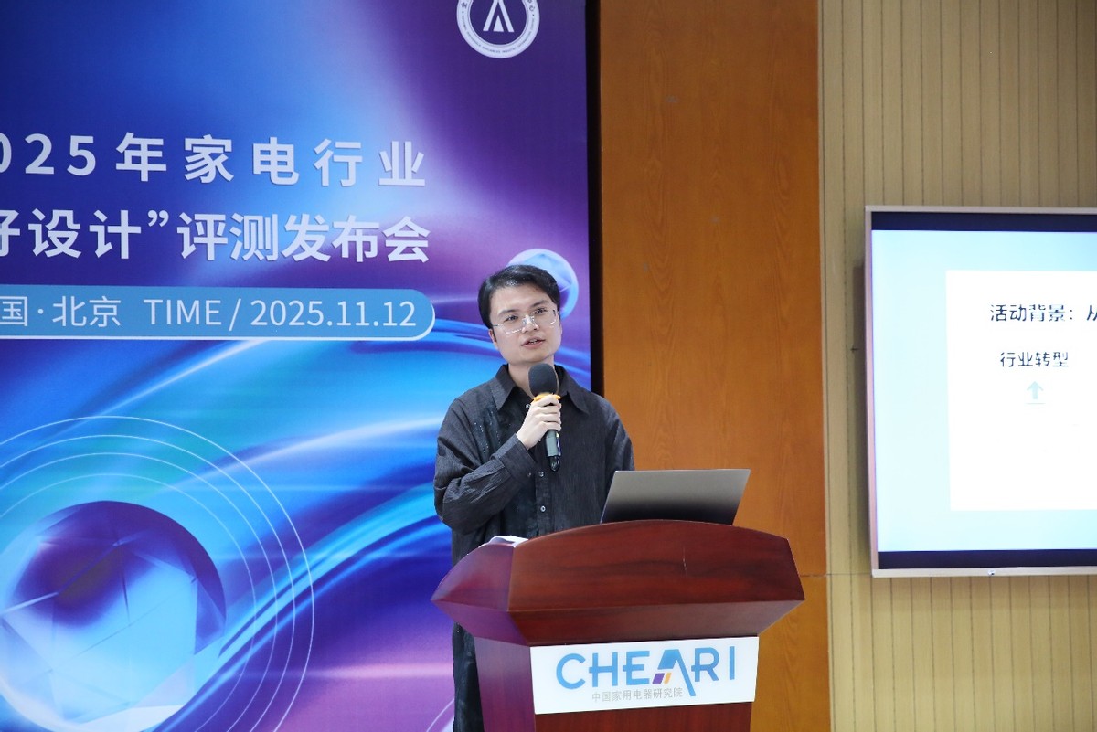 中国家用电器研究院设计研究与评测中心工程师杨运佳先生,详细解读了“好设计评测”项目的背景意义、实施流程,并系统拆解“好设计”评测的五大核心维度:功能设计、工业设计、结构设计、材料设计与用户体验设计。他总结2025年家电设计四大趋势:健康与节能双轮驱动、体验向精细化与场景化升级、AI深度渗透并推动智能适配与预判服务演进、美学与实用高度融合,并强调“好设计”必须实现“技术可落地、用户有感知、产业能可行”的三重价值统一。