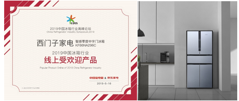 荣获“2019中国冰箱行业线上受欢迎产品”