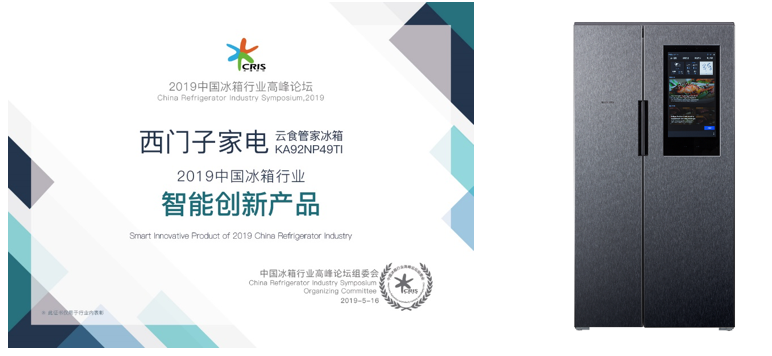 荣获“2019中国冰箱行业智能创新产品”