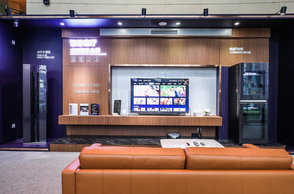在智慧客厅中,“指挥家”空调、臻藏+冰吧和“指挥家”电视M300营造了一个舒适放松的娱乐空间。“指挥家”空调不仅能吹出“定制风”,搭载的语音助手“小优”还能与用户进行对话,无论语速快慢、或者讲的是当地方言,“小优”都能听懂用户指令,整个过程非常流畅;而臻藏+冰吧通过创新“分享+私享”双域设计,无论朋友聚会还是家庭精储的需求都能满足;“指挥家”电视M300通过远场语音和面部识别技术,实现无触控操作,舒适观影。