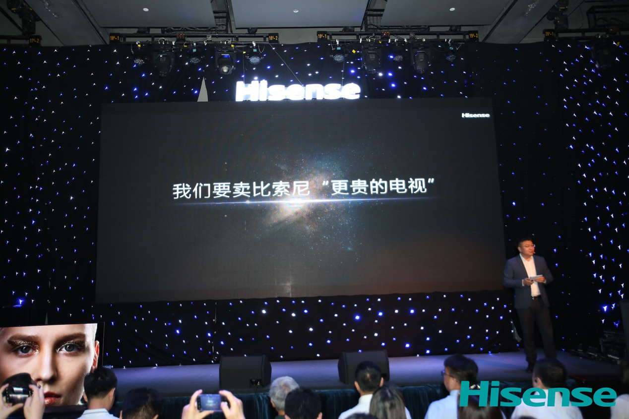 王伟表示,尤其是近一年来,电视价格战让行业销售额下降近14%,拖着电视市场一再朝着产品低端低质的泥淖下滑,如此下去整个电视产业只会死路一条。海信作为中国高端彩电第一品牌,这些年来坚持深耕技术,不断推出5000zone最高分区超画质电视、三色激光电视、最窄BM区电视和叠屏电视等尖端技术产品,并敞开胸怀欢迎华为等入局者,这才是老大才应该有的担当。他说:“我们就是要卖比索尼更贵的电视,就是要带领中国电视行业走向产业链高端,如果不是海信,还会是谁?”
