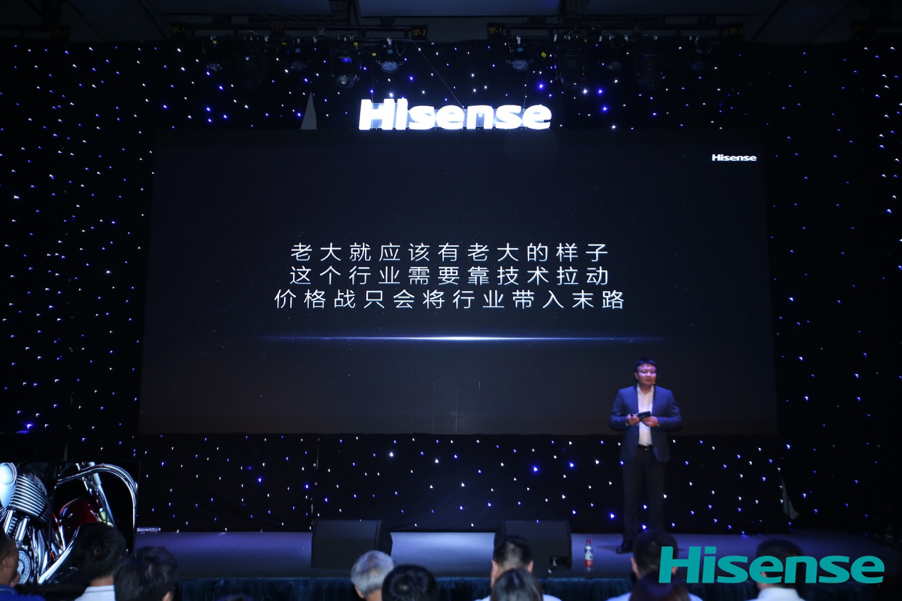 “推出叠屏电视只是一小步,希望我们的努力能把行业的焦点拉回到技术和品质,价格战只会死路一条。“7月8日,海信正式发布全球首台叠屏电视,海信电器营销公司总经理王伟发出“老大的呼声”。