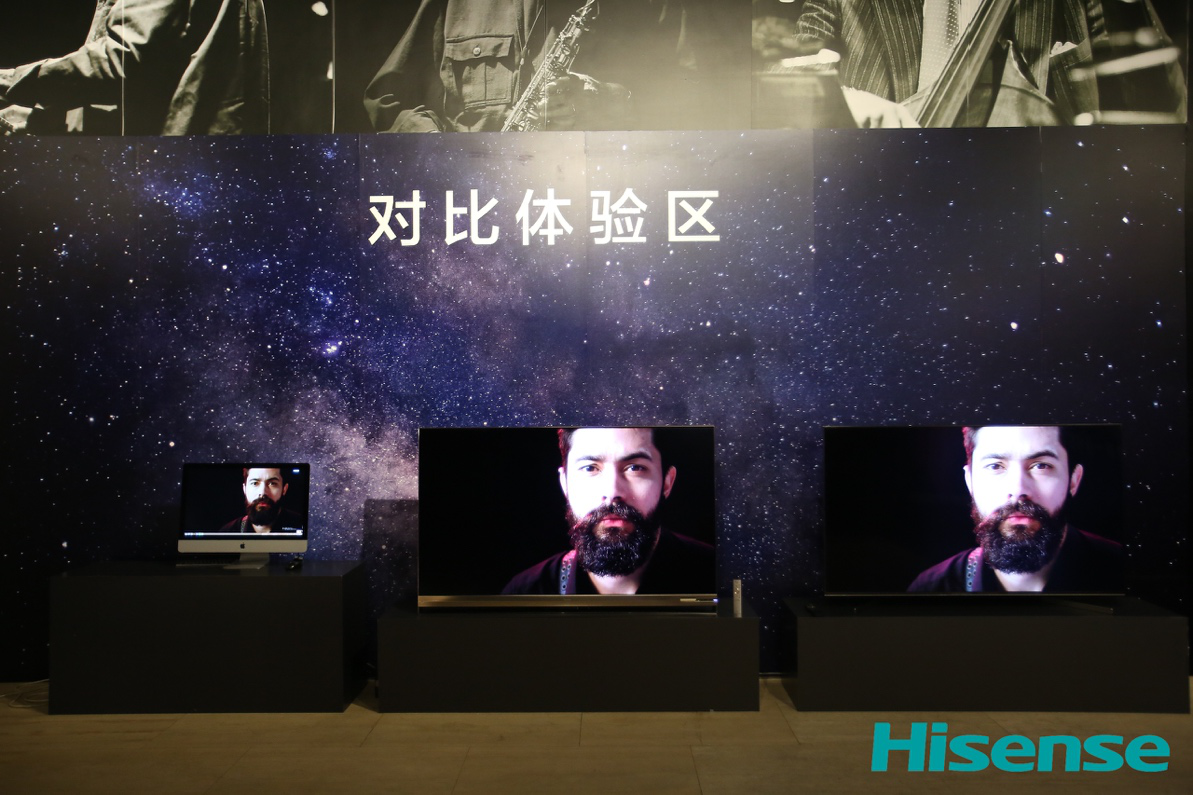 图说:画质对比实测,左为苹果显示器,中为海信叠屏电视,右为索尼液晶旗舰。