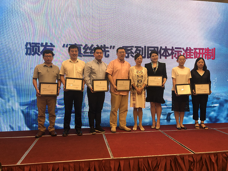 会上,中国标准科技集团有限公司董事长\中国标准化创新战略联盟副秘书长 赵宏春女士为威凯、通标、中环联合认证中心、海尔、万事利、绣娘、上海和黄白猫、中标能效科技(青岛) “真丝洗”系列团体标准研制单位颁发特殊贡献奖证书,以感谢其在“真丝洗”项目中贡献的集体智慧和技术力量。