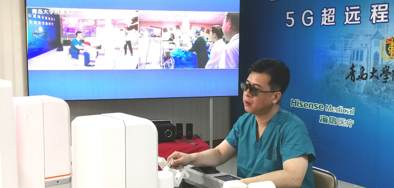 9月7日上午,一场极为复杂的手术在青岛和贵州同时进行。青岛大学附属医院副院长牛海涛等多名教授在该院远程数字手术室内,通过5G传输连接,在海信计算机辅助手术系统(CAS)指导下,操控手术机器人为3000公里外的贵州安顺西秀人民医院手术室内的实验动物实施了远程精准手术。据悉,这也是全球首例的3D+8M+5G+机器人远程手术。
