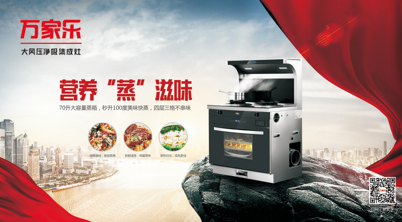 集成灶是万家乐生产的最受欢迎的产品之一,在单人公寓、小户型住房市场火热的当下,消费者期待集成灶能够在有限的厨房空间里,满足多种烹饪需求,从而更好地享受生活,为家庭带来生活品质的提升。万家乐在充分调研市场,了解用户需求的前提下,万家乐研发了系列品质优异的集成灶,以大风压净烟集成灶为代表的产品让中式烹饪实现绿色环保、节能减排成为可能。
