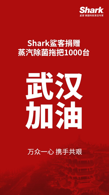 1月27日,专注于清洁电器领域的美国家电品牌Shark鲨客向武汉红十字会捐助1000台蒸汽除菌拖把,供各大医院、社区及公共场所等做好室内地面的深度清洁,减少细菌,守护健康。